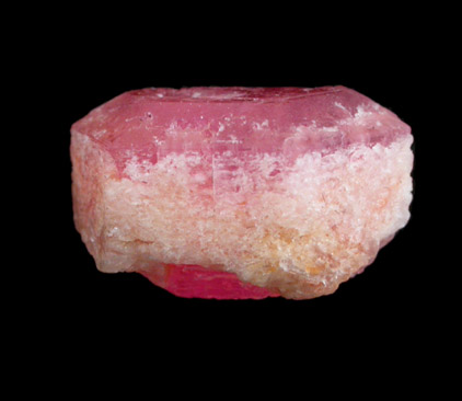 | Description: | Single crystal of translucent raspberry-pink pezzottaite with classic tabular, hexagonal crystal form and no matrix. The front half is complete and undamaged. The rear is crudely crystallized - typical for this mineral. |