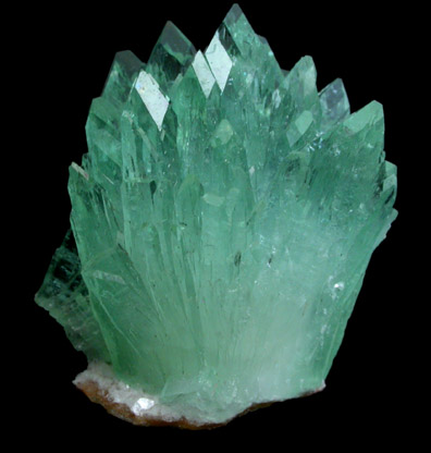 | Description: | Beautiful cluster of transparent intense green apophyllite crystals up to 19 mm with no matrix attached. The green color is most sought after by collectors and is from an old find, now exhausted. |