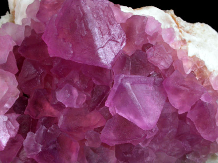| Description: | Colorful specimen of translucent purple fluorite on white quartz matrix. The fluorite crystals are octahedral form with slightly dull luster. |