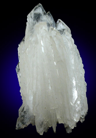 | Description: | Slender cluster of elongated pale-yellow barite crystals with chisel-point terminations. The crystals are translucent at the tip. |