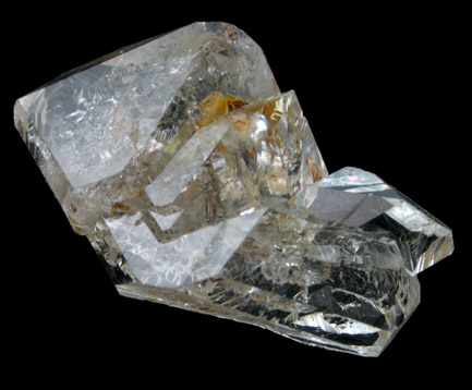 | Description: | Three parallel interconnected transparent colorless quartz crystals with limonite staining from a new find by a West Virginia mineral collector. The crystal is from a Herkimer-like quartz deposit. From the last batch I will get from the find. Collected in 2006 |