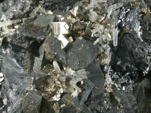 | AllMinerals/JohnBetts-FineMinerals > Online Mineral Museum Photographic Archive > Minerals from Peru > Chalcopyrite, Sphalerite, Pyrite, Quartz |
