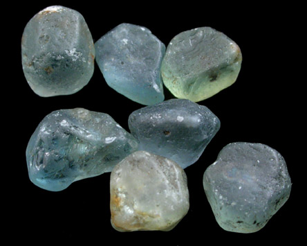 | Description: | Seven green to blue sapphire crystals from the alluvial gem deposits of the Piedmont. The sapphire crystals are water-worn with matte exterior surfaces, but the gemmy interior is still apparent. Ex. John A. Rorer, Jr. collection #091; |