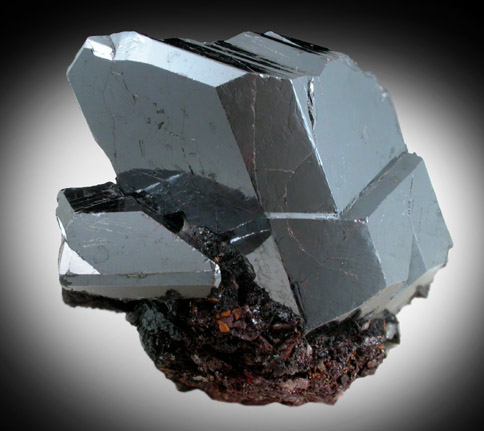 | Description: | Large crystals of dark red rutile with minor matrix on the bottom. The rutile crystals have smooth, mirror-like faces and show complex twinning especially in the terminations. The red color is quite distinct. Excellent specimen with few imperfections. Ex. Ed Hamlin; ex.Evan Jones; ex. John A. Rorer, Jr. collection #117 |