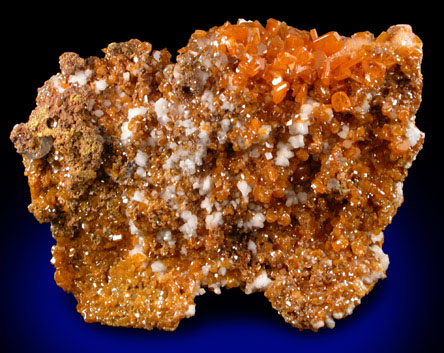 | Description: | Sparkling yellow-orange wulfenite crystals up to 5 mm with rhombic white calcite crystals up to 4 mm scattered throughout. The wulfenite crystals are translucent and highly lustrous. Minor damage. Ex. Frank Jaeger collection #346 |