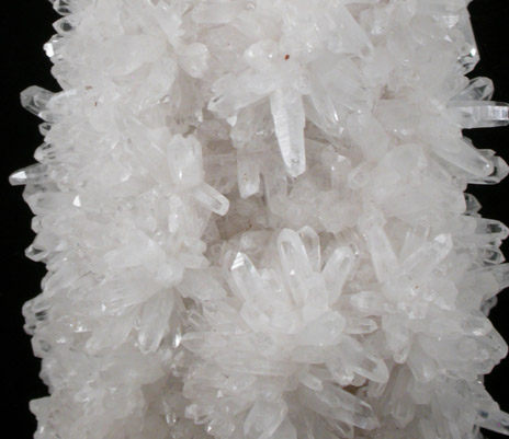 | Description: | Colorless quartz crystals up to 8 mm long that formed over large anhydrite crystals resulting in flat surfaces (casts) on the rear from the anhydrite that naturally dissolved away. Collected in the early 1980s |