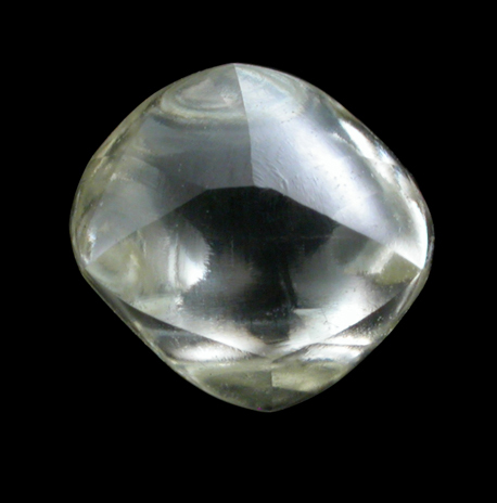 | Description: | Flawless crystal of pale-yellow natural diamond with superb internal clarity. In the gem trade this would be graded VVS1 or better. The crystal form is a slightly asymmetric octahedron with trisoctahedron faces. A beautiful gem crystal - no damage. |
