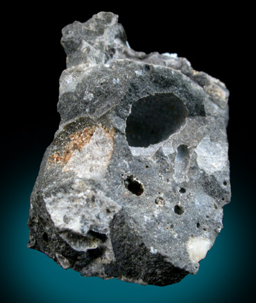 | Description: | Ancient slag with many hollow cavities lined with microcrystals. One cavity has several .2 mm pale-yellow thorikosite crystals in the opening where they are easily visible. Rare. Ex. A. Stevenson collection |
