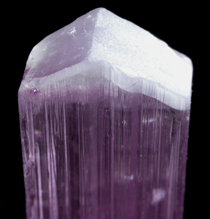 | Description: | Single crystal of transparent pink kunzite, the pink gem-grade variety of spodumene, with chisel-shaped termination and striated prism faces. The kunzite crystal is internally flawless. Weight: 16.3 grams |