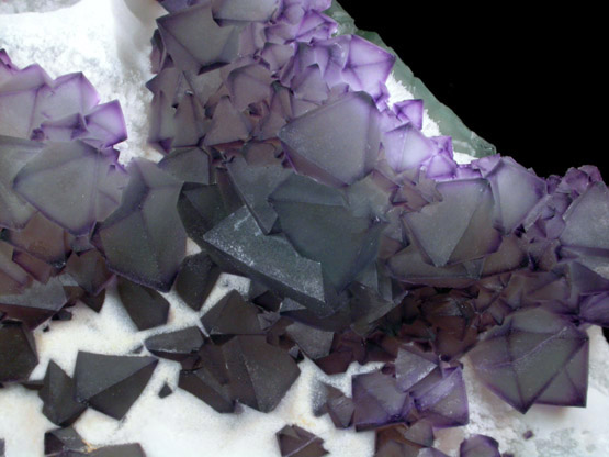| Description: | Sharp octahedral fluorite crystals in white quartz matrix that was dissolved away to expose the fluorite. The fluorite crystals are translucent green with purple on the outer edges. The contrast of the fluorite against the quartz is very attractive. |