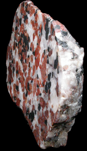 | Description: | Brick-red willemite embedded in colorless calcite with dark metallic franklinite. One face was sawn flat and polished to show the internal growth. Under UV illumination the willemite fluoresces bright green and the calcite fluoresces orange. A classic. Ex. John Albanese (1898-1969), ex. John Albanese, Jr. |