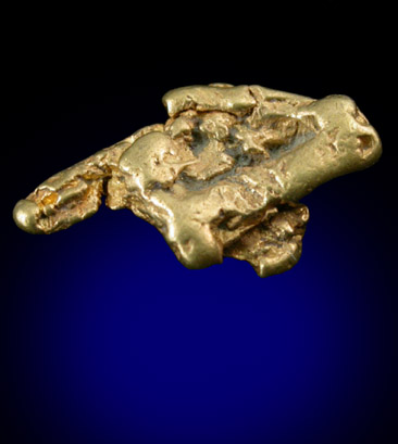 | Description: | Rounded nugget of native gold panned from the East Branch of the Swift River, one Maine's best gold panning areas. Remnants of the original crystal faces are still evident, though the alluvial action of the river has worn the edges round. |