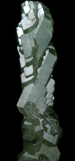 | Description: | Elongated stalactite of translucent green apatite crystals in parallel orientation. Both ends of the apatite stalactite are terminated and the crystal faces are lustrous. From a new find at the Sapo Mine. Collected August 2007 |