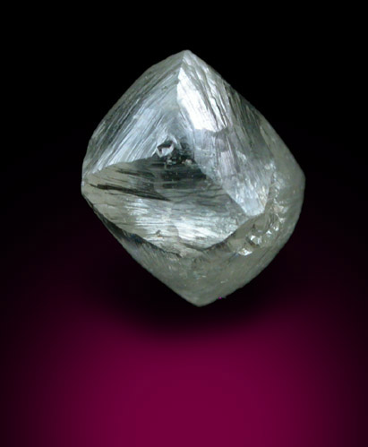 | Description: | Colorless (slightly gray) genuine diamond crystal with octahedral form and crystal faces that resemble stepped layers stacked on top of each other (looks beautiful under magnification). A few small inclusions are visible on one face, all else clean. |