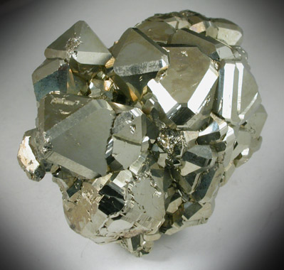 | Description: | Bright metallic pyrite crystals with octahedral crystal form modified by cubic and dodecahedral edge and corner faces. |