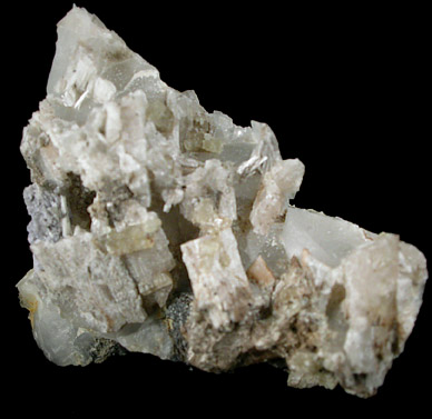 | Description: | Transparent-to-translucent pale yellow-gray hexagonal fluorcaphite crystals up to 4 mm long on gray-white natrolite. |