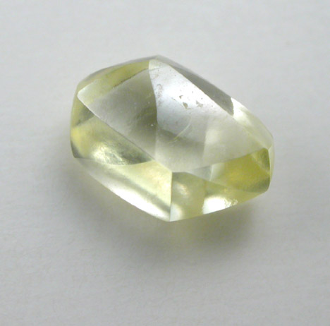 | Description: | Transparent fancy-yellow natural diamond crystal with lustrous faces (excellent natural sparkle) and complex crystal form that is elongated in one axis. There is a small subsurface flaw barely visible on the rear when viewed from certain angles. |