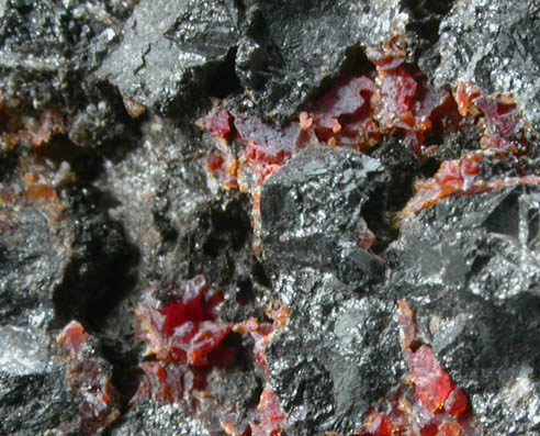 | AllMinerals/JohnBetts-FineMinerals > Online Mineral Museum Photographic Archive > Minerals from New Jersey > Zincite (crystals!) on Franklinite with Willemite |