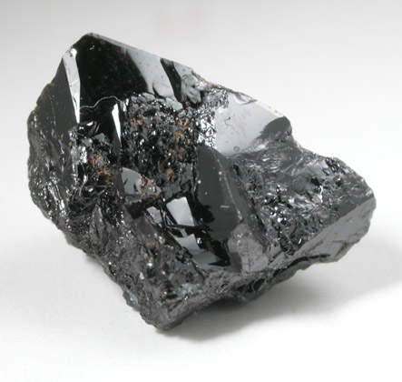 | Description: | Complex cluster of highly lustrous black cassiterite crystals fully crystallized all around showing repeated twinning throughout. Looks beautiful under magnification. Cassiterite, an oxide mineral, is rare in the pegmatites of Maine. |