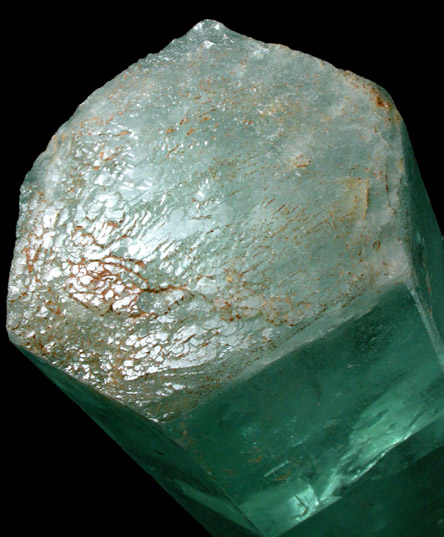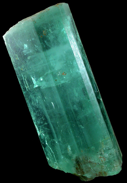 | Description: | Superb large gem-grade crystal of aquamarine beryl large from an old find 50 years ago - much better than those commonly available today. The termination has a complex crystallization texture of smaller parallel faces. Excellent color and clarity. |