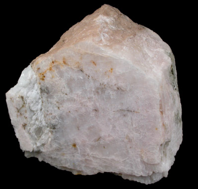 | Description: | Terminated single crystal of pink spodumene with rough surfaces on three faces where it was intergrown with surrounding matrix. One smooth face on the rear is a cleavage face and shows internal pink color. |