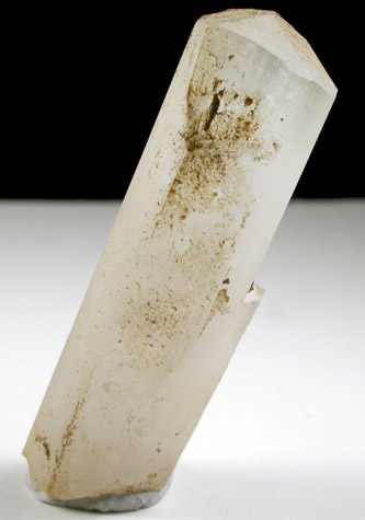 | Description: | Single crystal of translucent colorless natrolite with shallow pyramidal termination. The natrolite crystal has a thin, earthy coating that might be cleaned off. Ex. Steve Chamberlain collection #4863, acquired in 1982 from George Robinson (1946-2024) |