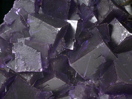 | Description: | Translucent deep-purple cubic fluorite crystals with crystals faces composed of many microscopic cubic faces in parallel orientation giving a silky luster. The fluorite color shows well due to good translucency, but is on the dark side. Ex. Steve Chamberlain collection #191; originally acquired in 1963 |