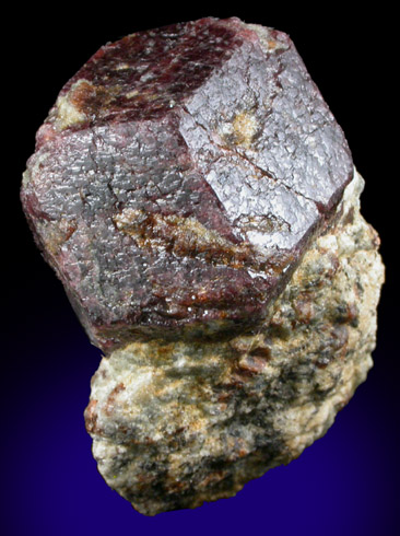 | Description: | Large red-brown almandine garnet crystal in gray schist. The almandine crystal is dodecahedral form with crystallization patterns on the faces. The crystal was fractured in situ but the crack is not visible from the front. Ex. Ned Reynolds (1923 - 2005), originally acquired in 1961 |