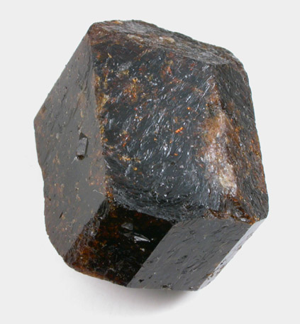 | Description: | Single dravite crystal with remnants of phlogopite mica matrix in the crevices throughout the specimen. The dravite tourmaline is translucent brown with smooth faces that are pockmarked where it is intergrown with phlogopite. |