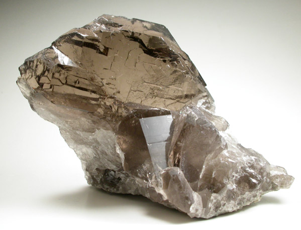 | Description: | Internally flawless, transparent, smoky quartz crystals with glassy crystal faces in the classic Gwindel habit of stacked doubly-terminated crystals that twist in orientation on a central vertical axis. The top corner has a contact from the pocket wall. Ex. Robert C. Lambert (1919-2008) #27; ex. Carter Rich; ex. Gerd Frischmuth |