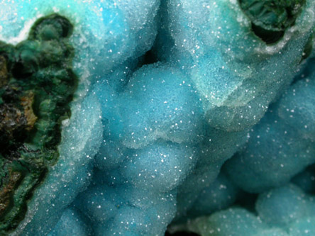 | Description: | Double-sided specimen of sparkling blue chrysocolla coated with transparent quartz microcrystals that are highly reflective. Great color and coverage. I have seen similar specimens from the Ray Mine, but Twin Buttes Mine specimens are much rarer. Ex. Robert C. Lambert (1919-2008) #393 |
