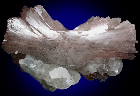 | Description: | V-shaped formation of doubly-terminated pink heulandite crystals to 55 mm across with pearly luster on the broad crystal faces plus translucent gray quartz crystals in spherical aggregates up to 7 mm across. Ex. Robert C. Lambert (1919-2008) #254; acquired in 1995 from D. Blauwet |