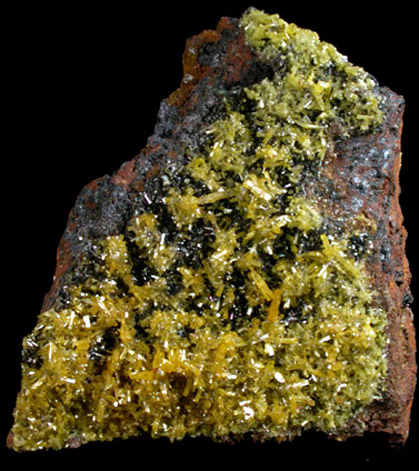 | Description: | Transparent yellow mimetite crystals up to 4 mm long on dark matrix that was reported by B. Pinch to be cesarolite. Looks beautiful under magnification. Ex. Robert C. Lambert (1919-2008) #467; acquired in 2000 |