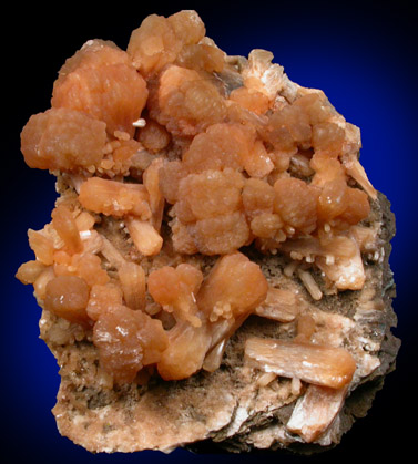 | Description: | Translucent brown stilbite crystals in classic wheat-sheaf-shaped crystal aggregates on basalt matrix. Ex. Steve Chamberlain collection #4912; ex. J. Van Velthuizen |