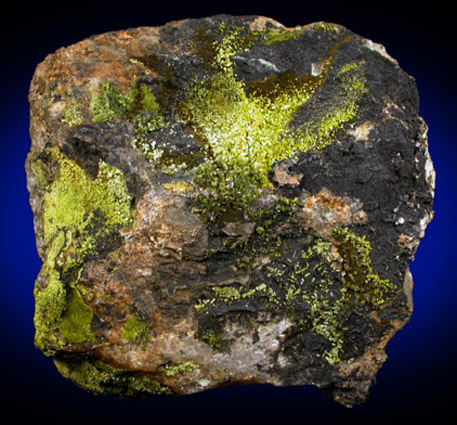 | Description: | New find of olive-green-brown vauquelinite microcrystals up to 0.1 mm from the first find of vauquelinite from Virginia as described in Mineral News with green hexagonal pyromorphite crystals up to 1.0 mm long on lustrous black mottramite microcrystals. Refer to: Virginia Minerals, vol. 50 #2, May 2007 and Mineral News August 2008 |