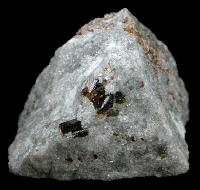 | Description: | Gray-white granular Inwood marble with enclosed lustrous brown dravite-uvite tourmalines to 4 mm long. See my article Manhattan Mineral Collecting for the story behind this find. |