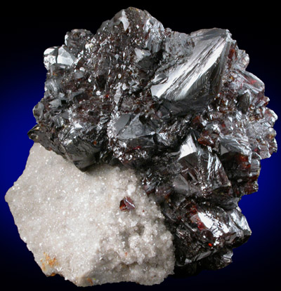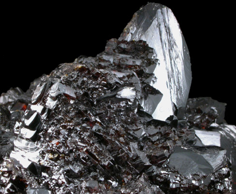 | Description: | Highly lustrous translucent red-brown sphalerite crystals up to 22 mm in rounded aggregate 75 mm across of many crystals. The sphalerite is internally translucent and shows rich red color when rear-illuminated. Ex. Glenn E. Nicol collection #2554 |