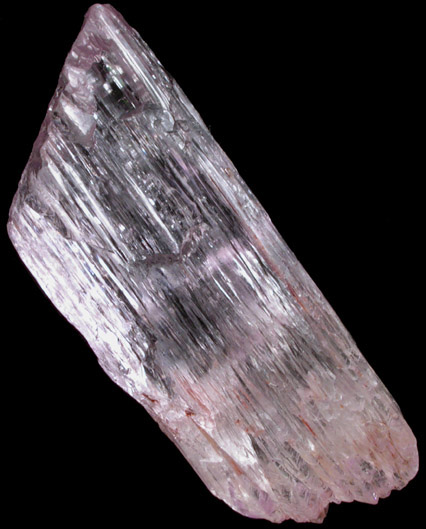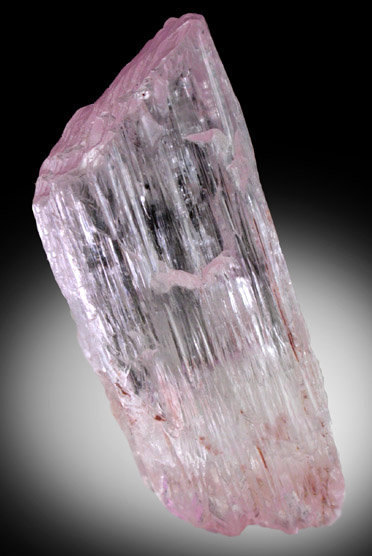 | Description: | Doubly-terminated transparent kunzite crystal, the pink gem variety of the mineral species spodumene. Internally the crystal is quite clean and has areas that could produce several 8-10 mm gemstones if faceted. |