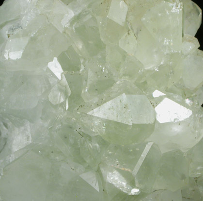 | Description: | Mint-green transparent datolite crystals with lustrous crystal faces. The crystal in the middle is internally flawless with deep color and could produce a 6-7 mm faceted gemstone. |
