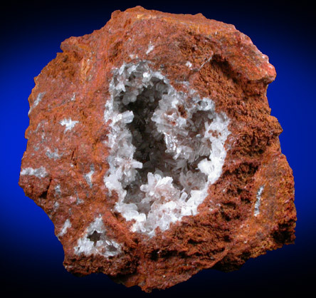 | Description: | Colorless hemimorphite crystals lining a cavity in brown gossan. The hemimorphite crystals are translucent, with transparent terminations and have lustrous crystal faces. The specimen sits upright nicely without additional support. |