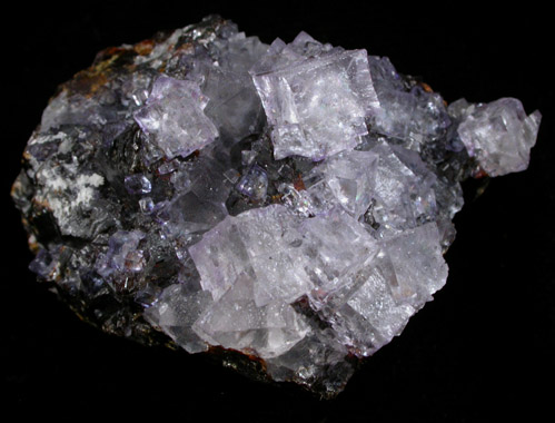 | Description: | Transparent purple cubic fluorite crystals up to 8 mm across on lustrous brown sphalerite crystalline matrix. The fluorite crystals have surfaces composed of microscopic parallel crystal faces. |