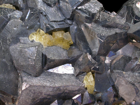 | Description: | Lustrous gray metallic galena crystals to 20 mm across with transparent yellow fluorite in a few crevices between the galena crystals. The galena crystals are cubic form with octahedral corner faces. Ex. Henry D. Miller (1838-1919 or 1920) collection, (see Final Disposition Of Some American Collections Of Minerals, Frederick A. Canfield, 1923), bequeathed to the Wadsworth Atheneum in 1909; ex. Loomis-Chaffee School |
