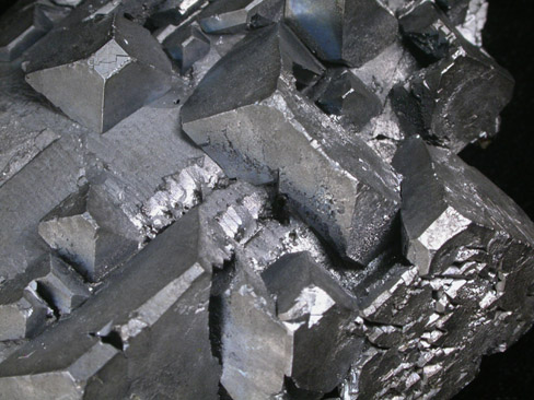 | Description: | Gray metallic octahedral galena crystals in parallel orientation. The surfaces of the galena crystals have a thin coating of greenish secondary alteration, probably anglesite. The parallel faces reflect light simultaneously making it very showy. Ex. Chas. W. Velte Jr. (1914-1987) collection #33 |