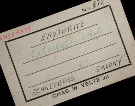 | Locality: | Schneeberg District, Erzgebirge, Saxony, Germany (Type Locality for Erythrite) |