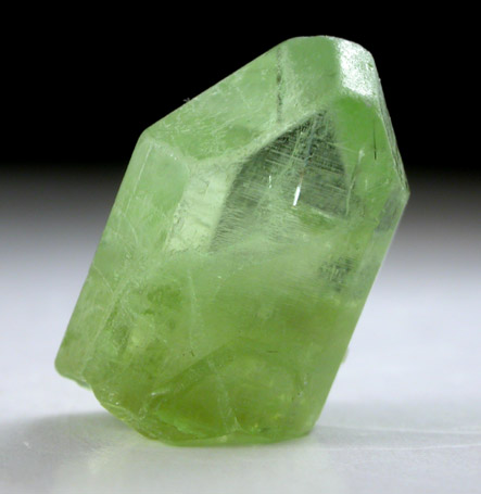 | Description: | Gemmy peridot crystal, the transparent green gem variety of the mineral species forsterite, with steep termination faces with dark needle-like ludwigite inclusions and no matrix. The crystal faces are flat and clean. Has good color and clarity. |