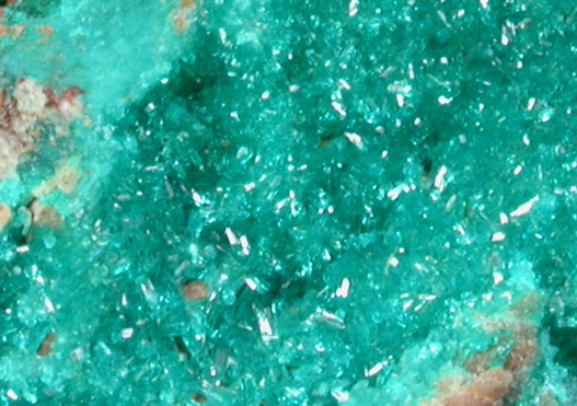 | Description: | Transparent green dioptase crystals coating one face of brown matrix. The dioptase crystals look beautiful when viewed under magnification. Ex. Chas. W. Velte Jr. (1914-1987) |