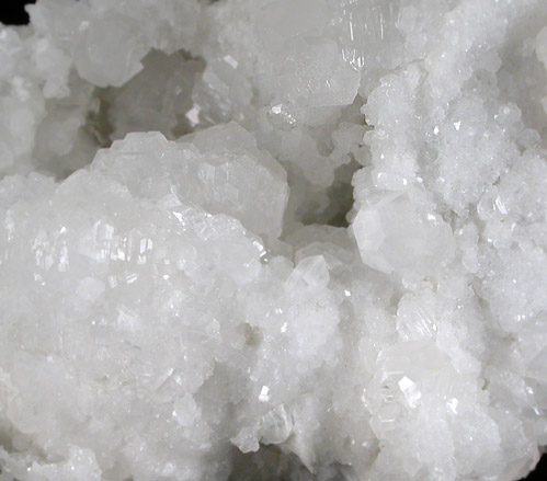 | Description: | Well crystallized transparent colorless hexagonal strontianite crystals up to 6 mm across on translucent white dolomite matrix. The strontianite crystals are in aggregates of stacked, parallel crystals and look beautiful when viewed under magnification. Ex. Steve Chamberlain collection #11950; acquired in 1993; ex. Florence Mecke collection #69-B (ca. 1950) |