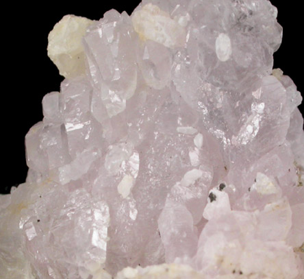 | Description: | Triangular formation of crystallized pink rose quartz crystals with the surfaces composed of many small lustrous termination faces. Rose quartz crystals are rare and occur at only a few localities. |