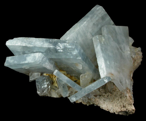 | Description: | Bladed rhombic translucent blue barite crystals. Ex. Bob Holzer (1934-2009) collection |