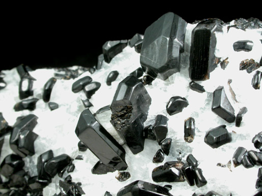 | Description: | Lustrous opaque black pargasite crystals in translucent colorless calcite. The pargasite crystals have smooth crystal faces with complex faces on the edges that give them a rounded appearance. Two crystals are incomplete. Ex. Bob Holzer (1934-2009) collection |